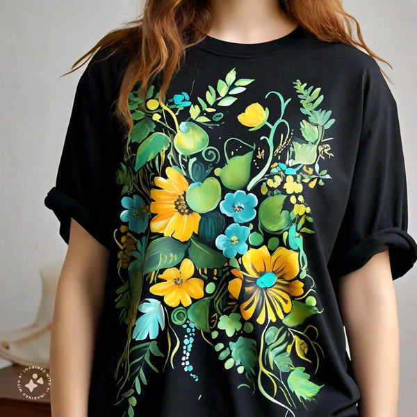 Experience the beauty of nature with our hand-painted floral t-shirt! Each delicate petal and leaf is carefully crafted, creating a stunning design that brings the garden to life. Made with soft, breathable fabric, it's as comfortable as it is stylish. Embrace the floral trend and add a touch of elegance to your wardrobe – get your hand-painted floral t-shirt today!