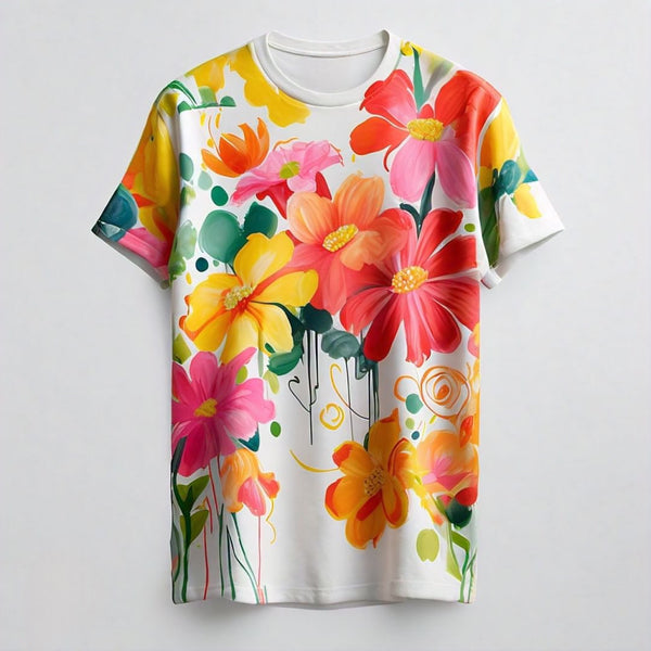 Elevate your wardrobe with our exquisite hand-painted floral tee, a wearable masterpiece that seamlessly combines artistry with comfort. Each tee is meticulously crafted by skilled artisans, ensuring no two pieces are exactly alike. Delicate blooms cascade across the soft cotton fabric, evoking a sense of natural beauty and whimsy. Whether paired with jeans for a casual outing or dressed up with a skirt for a touch of elegance, this tee effortlessly adds a touch of charm to any ensemble. Embrace individuality and celebrate craftsmanship with our hand-painted floral tee, a wearable work of art that captures the essence of botanical splendour.