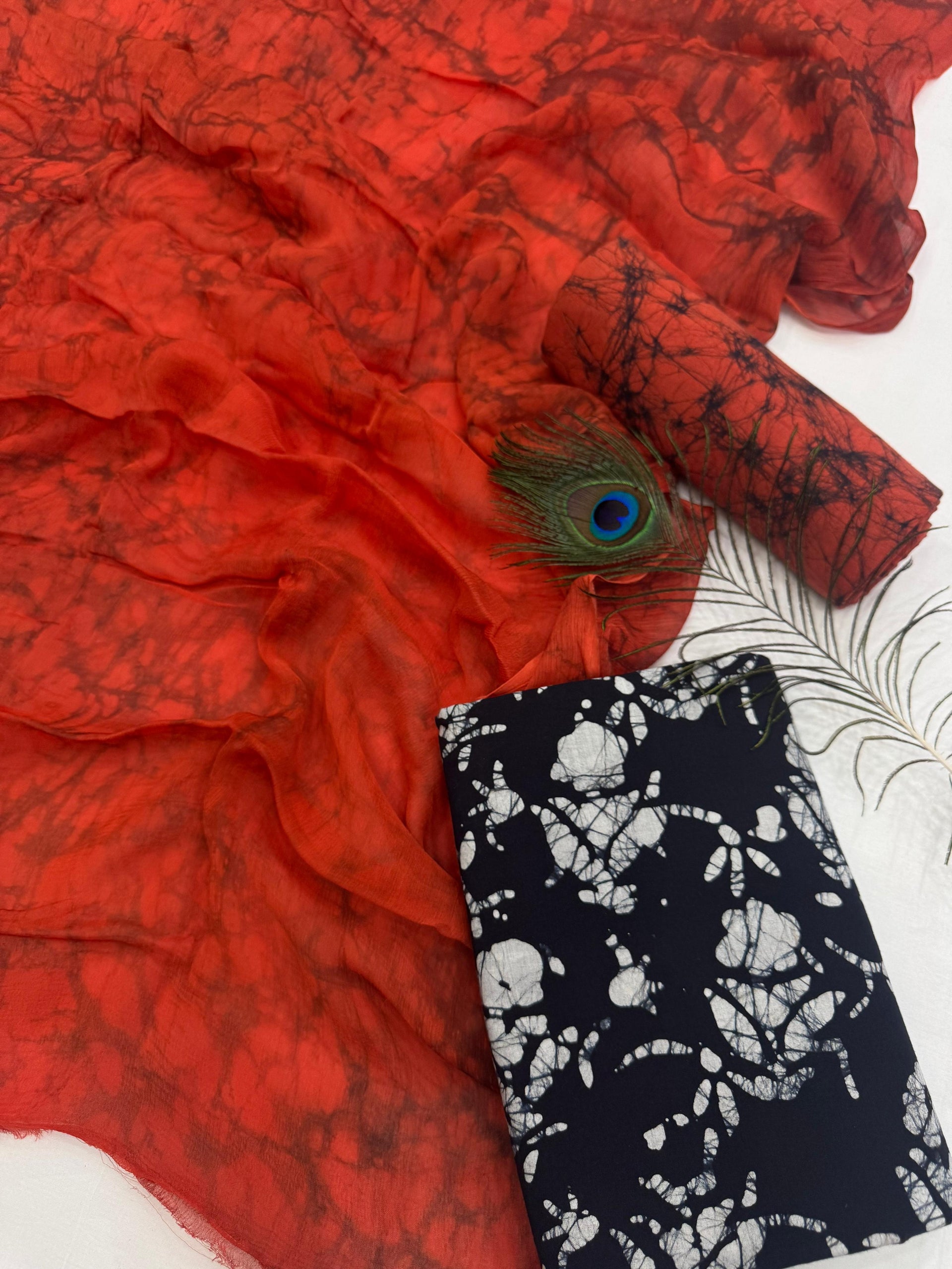 - Hand Painted cotton red suit with Chiffon Dupata