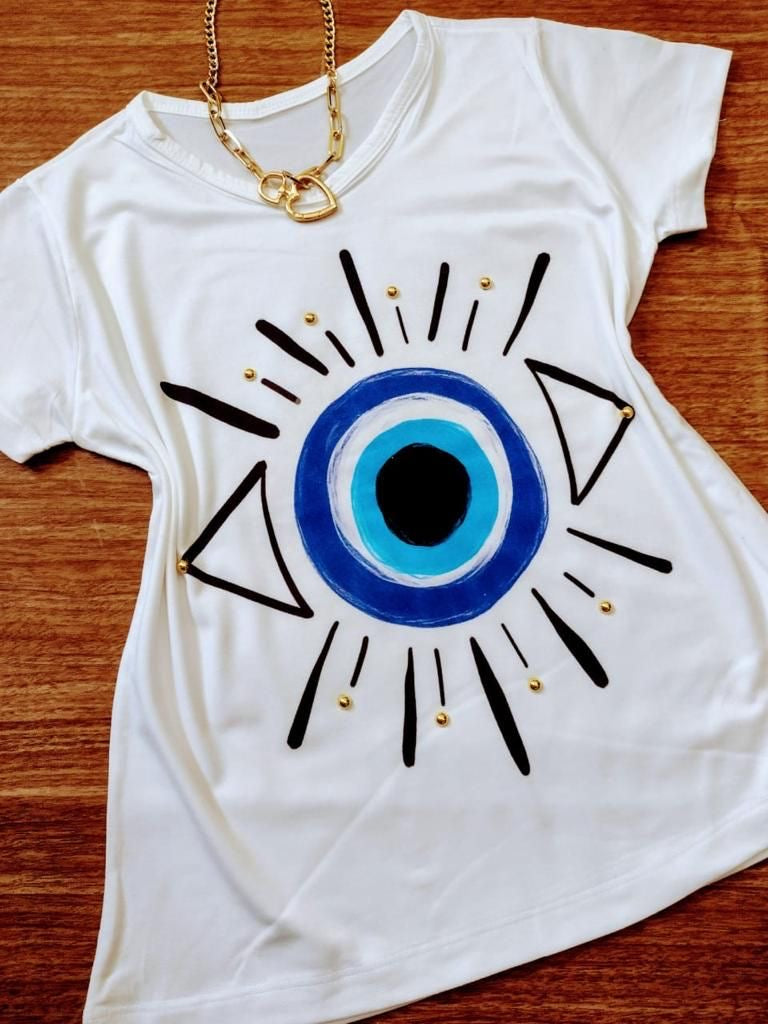 Embrace unique protection with our hand-painted Evil Eye T-shirt. Each stroke of vibrant color adds a touch of mystique, combining traditional symbolism with contemporary style. Stand out and stay guarded with this wearable art piece that's as eye-catching as it is protective.