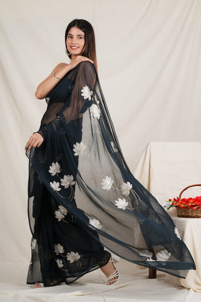 - Hand Painted Chiffon Saree