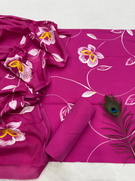 Hand Painted Cotton Suit set with mul cotton Dupatta