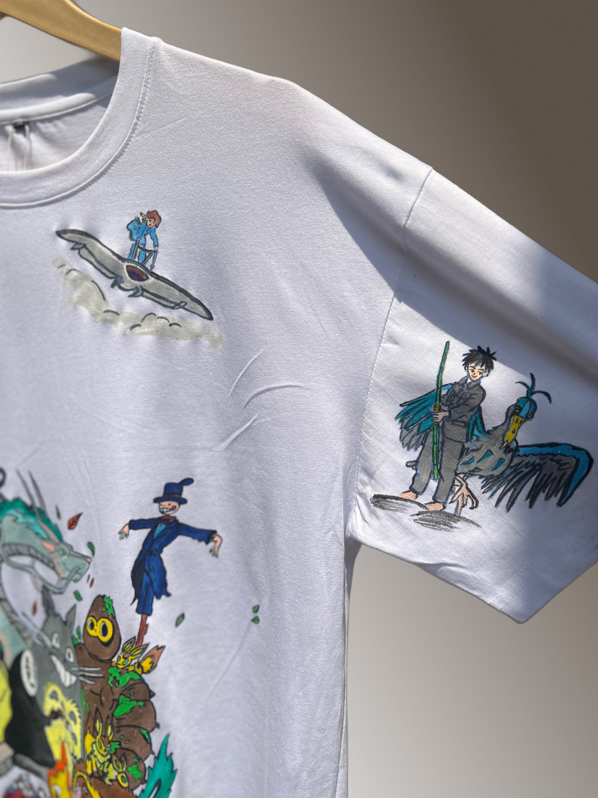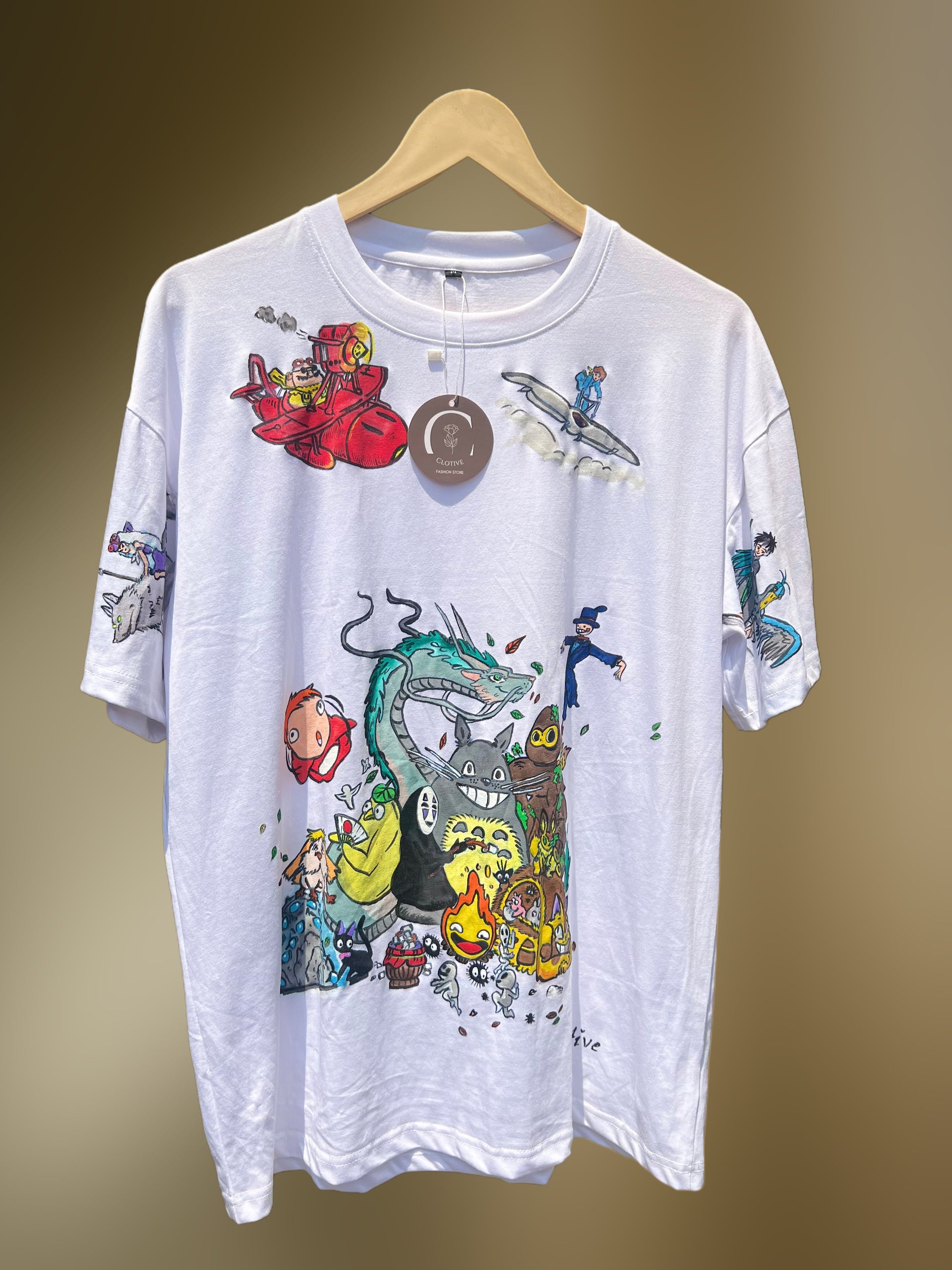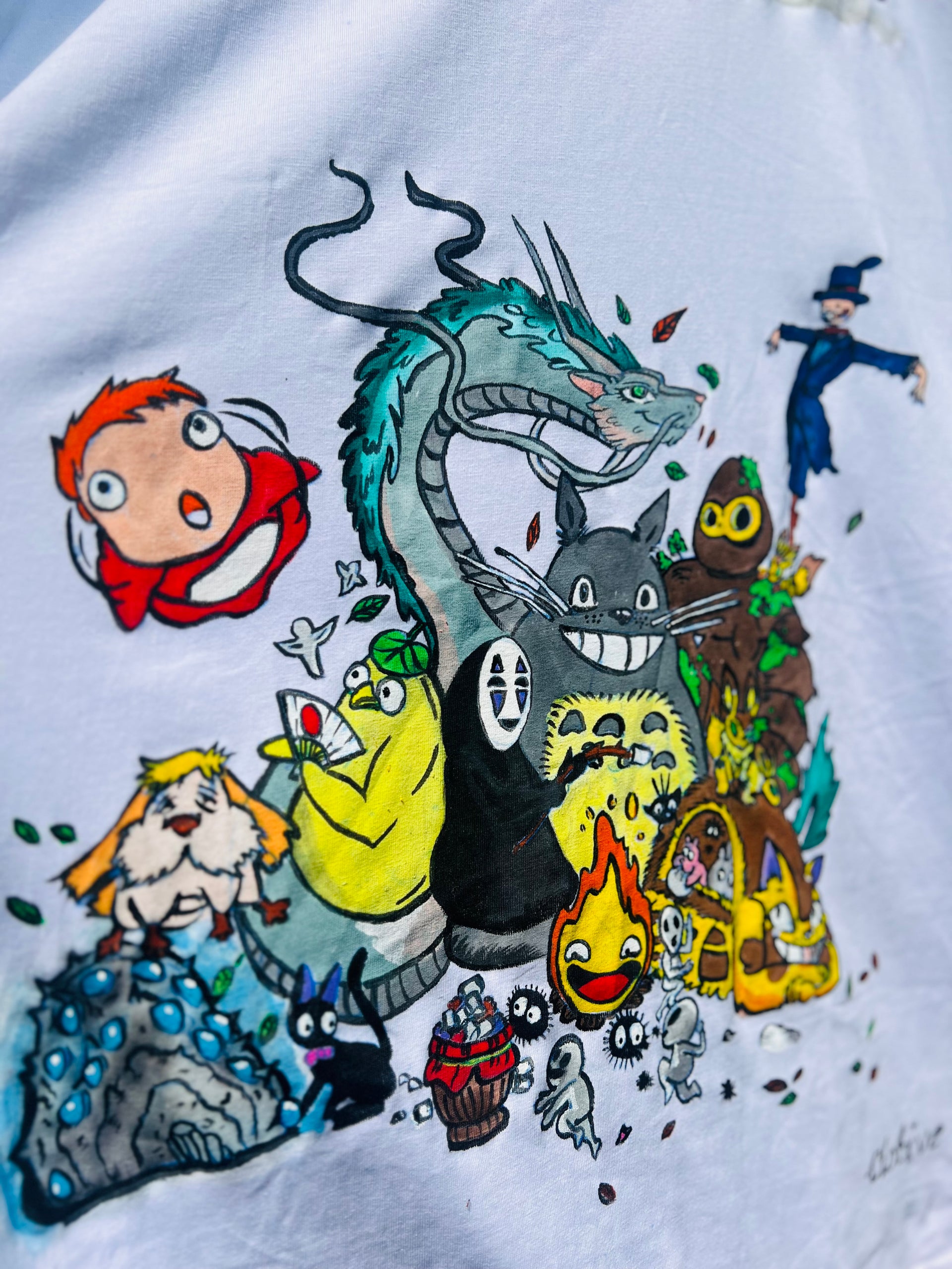 Hand-painted Studio Ghibli character t-shirts featuring iconic, detailed designs inspired by your favorite films. Each piece is crafted with love, bringing the magic of Ghibli to life on soft, high-quality fabric. Perfect for any fan looking to wear a bit of whimsy and nostalgia.