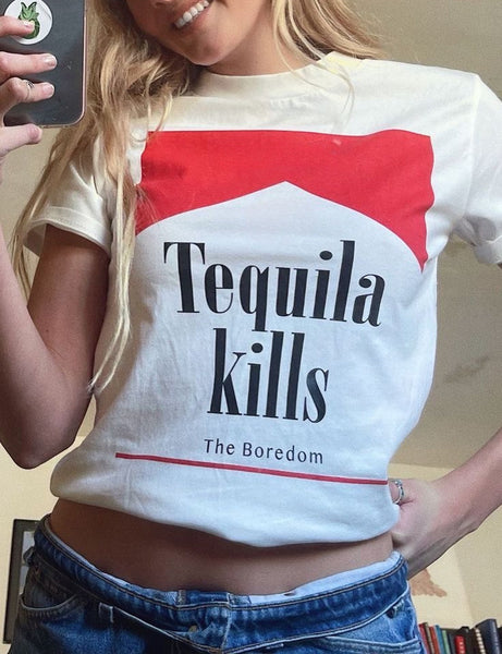 Introducing our latest creation: the hand-painted "Tequila Kills Boredom" T-shirt! Perfect for those who love a good time and a great laugh, each shirt is uniquely hand-painted, ensuring no two are exactly alike. Made with high-quality, comfortable fabric and vibrant, durable paints, this T-shirt is both stylish and fun. Wear it to your next party, happy hour, or casual outing and let your shirt do the talking. Spice up your wardrobe and beat boredom with a splash of tequila-inspired humor. Get yours today and make every day a fiesta!