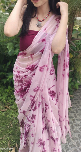 Introducing our exquisite new collection: the Beautiful Lavender Tie-Dye Saree. This stunning saree features a delicate lavender hue, expertly hand-dyed to create a unique, ethereal pattern that blends tradition with contemporary style. Perfect for any occasion, its soft, flowing fabric drapes gracefully, offering both comfort and elegance. Embrace the charm of artisanal craftsmanship with this elegant addition to your wardrobe, and make every moment a little more special with our Beautiful Lavender Tie-Dye Saree.